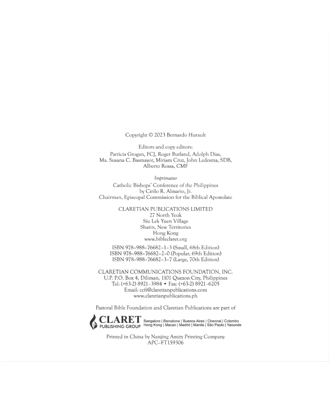 • Fonts are now of the same size. In previous editions, some texts from the Old Testament that are generally not used in the liturgy were in smaller fonts.