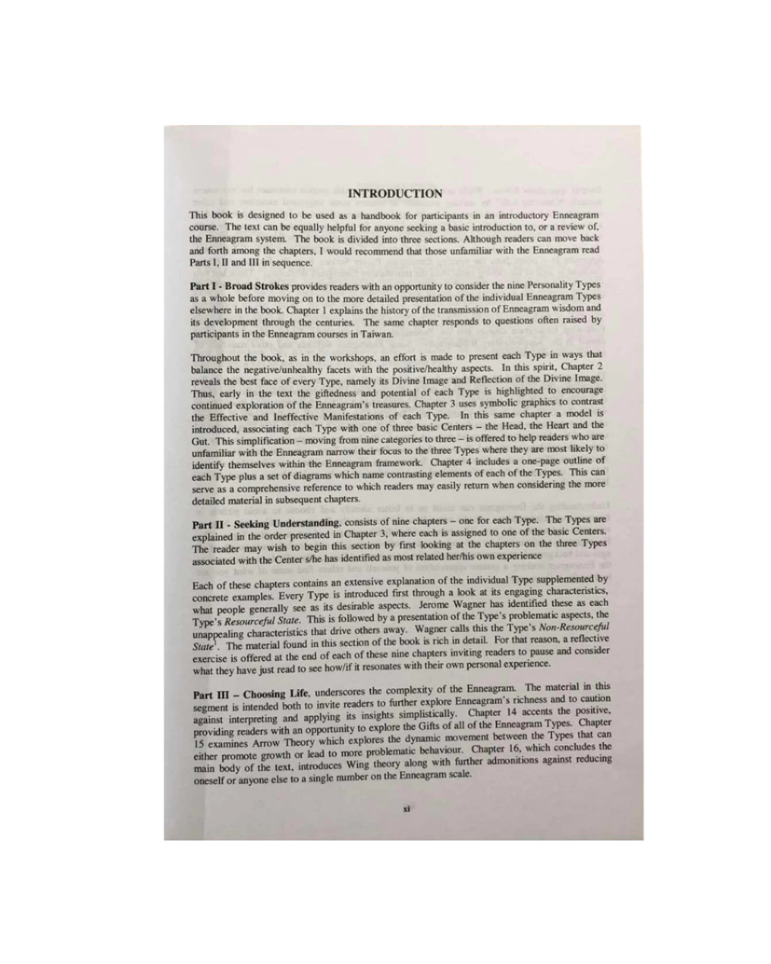 This book is designed to be used as a handbook for participants in an introductory Enneagram course. The text can be equally helpful for anyone seeking a basic introduction to, or a review of. the Enneagram system. The book is divided into three sections. Although readers can move back and forth among the chapters, I would recommend that those unfamiliar with the Enneagram read Parts I, II and III in sequence.