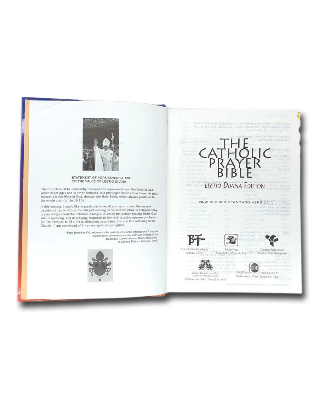 An ideal Bible for anyone who desires to reflect on the individual stories and chapters of just one, or even all, of the biblical books, while being led to prayer through meditation on that biblical passage.