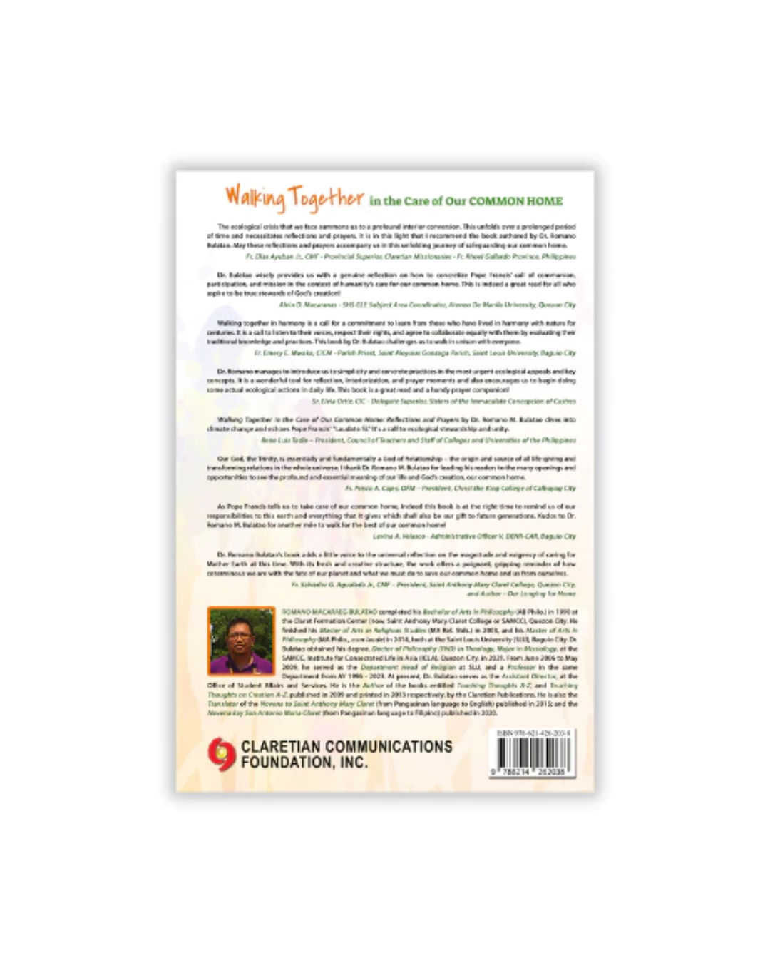 The ecological crisis that we face summons us to a profound interior conversion. This unfolds over a prolonged period of time and necessitates reflections and prayers. It is in this light that I recommend the book authored by Dr. Romano Bulatao. May these reflections and prayers accompany us in this unfolding journey of safeguarding our common home.